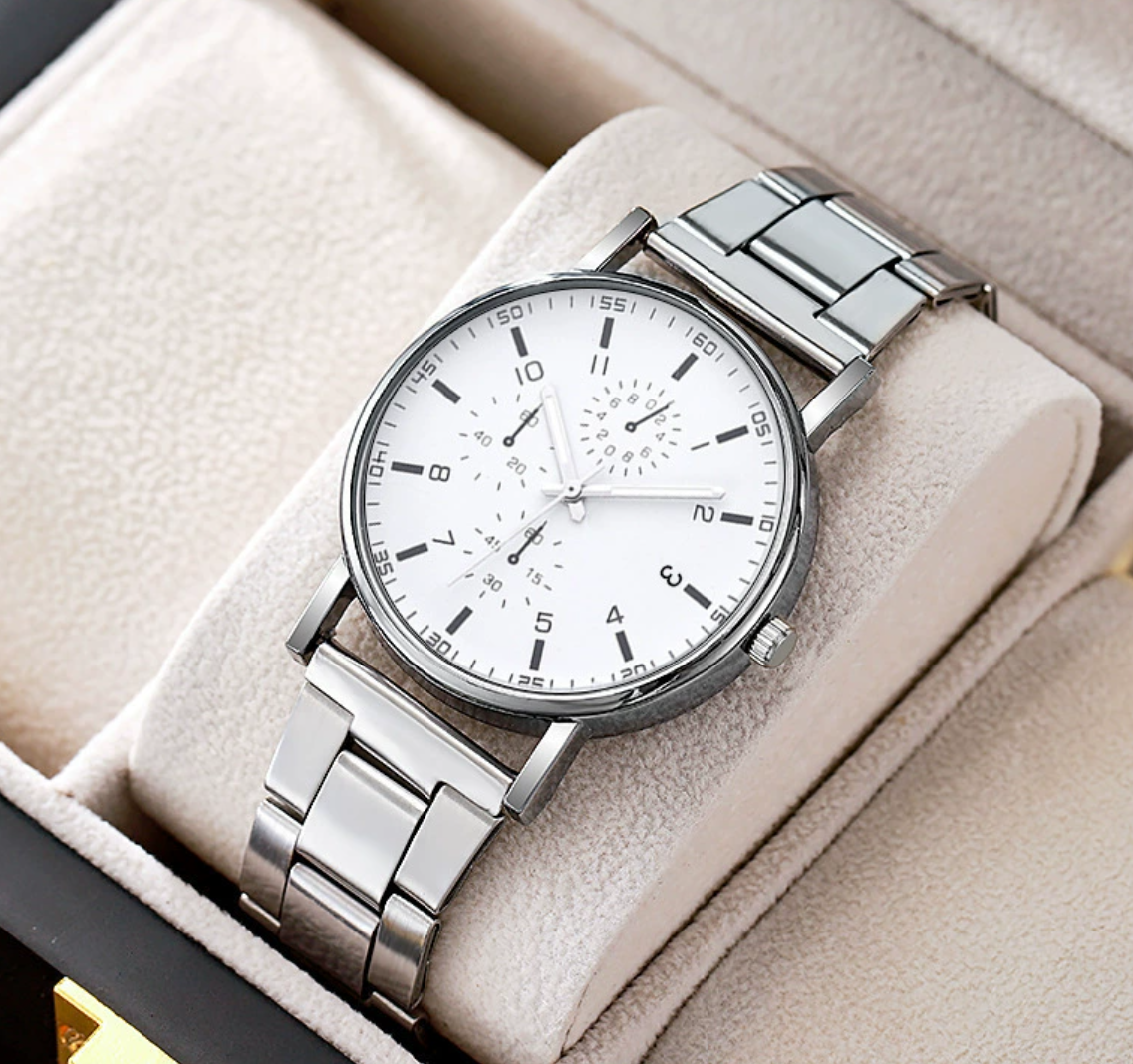 Alloy case quartz watch for men, business style set-White